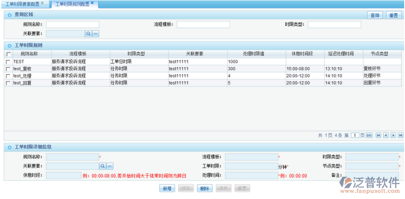 2)工單時限規(guī)則配置