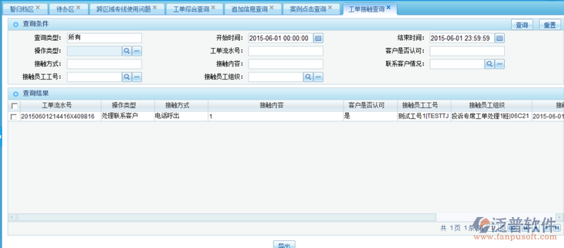 1) 菜單路徑:【客戶服務(wù)】->【服務(wù)請求】->【工單查詢】->【工單接觸查詢】,點(diǎn)擊打開菜單;