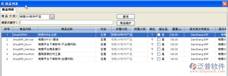 可以根據(jù)商品大類和搜索關(guān)鍵字,查詢要添加的商品。讓后選中要添加的商品,點(diǎn)‘確定’按鈕,就可以了。