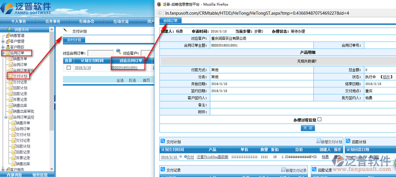 3、交付計(jì)劃界面中,點(diǎn)擊對(duì)應(yīng)的合同訂單即可了解詳細(xì)的合同訂單情況。如下圖所示: