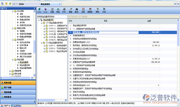 現(xiàn)金流量表:查詢企業(yè)財(cái)務(wù)當(dāng)期的現(xiàn)金流量明細(xì)表。