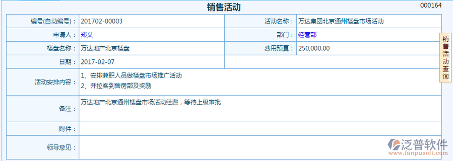 當(dāng)前位置:工程項(xiàng)目OA系統(tǒng) > 房地產(chǎn)OA系統(tǒng) > 功能介紹 > 營(yíng)銷(xiāo)管理 > 銷(xiāo)售活動(dòng)