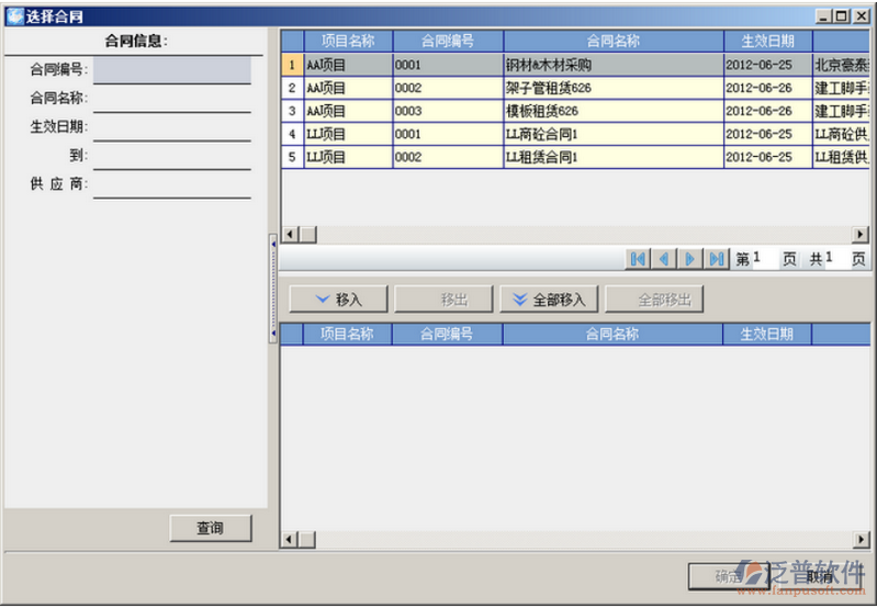 按鈕,彈出“選擇合同”對話框,