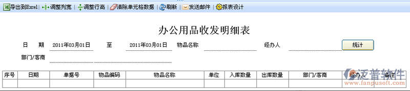 在下圖所示的統(tǒng)計(jì)頁面中輸入“物品名稱”進(jìn)行統(tǒng)計(jì)操作: