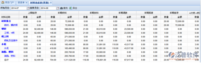 工程材料動態(tài)報表(類別)