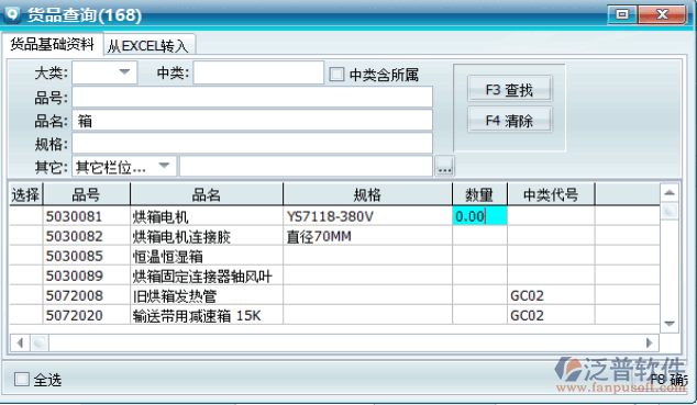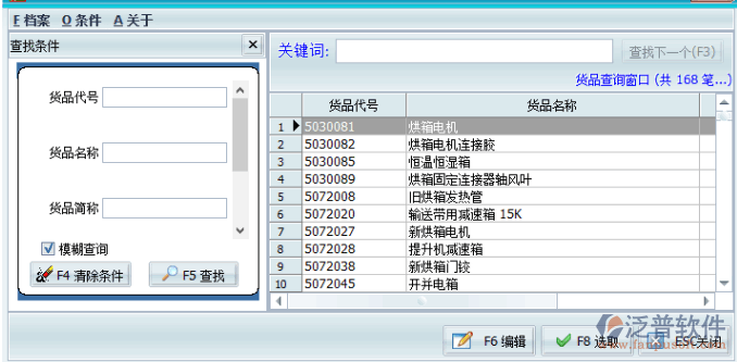 品名:物料名稱,可以輸入其中某一關(guān)鍵詞。