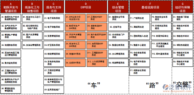 集團(tuán)公司信息技術(shù)總體規(guī)劃含應(yīng)用類、基礎(chǔ)設(shè)施類、組織與保障類項(xiàng)目,ERP系統(tǒng)在企業(yè)信息化建設(shè)中處于核心地位,其它系統(tǒng)要與其集成應(yīng)用。