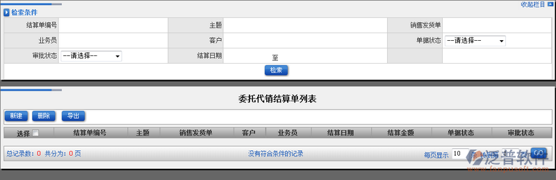 委托代銷結(jié)算單列表最重要的作用是什么?其實委托代銷結(jié)算單就是對新建的委托代銷結(jié)算單進行一個存放,所有創(chuàng)建好的委托代銷結(jié)算單都在結(jié)算列表中顯示。ERP系統(tǒng)還為用戶提供檢索條件查詢功能,ERP系統(tǒng)提供的檢索條件主要包含有:結(jié)算單編號、主題、銷售發(fā)貨單、業(yè)務員、客戶、審批狀態(tài)等相關(guān)信息進行查詢
