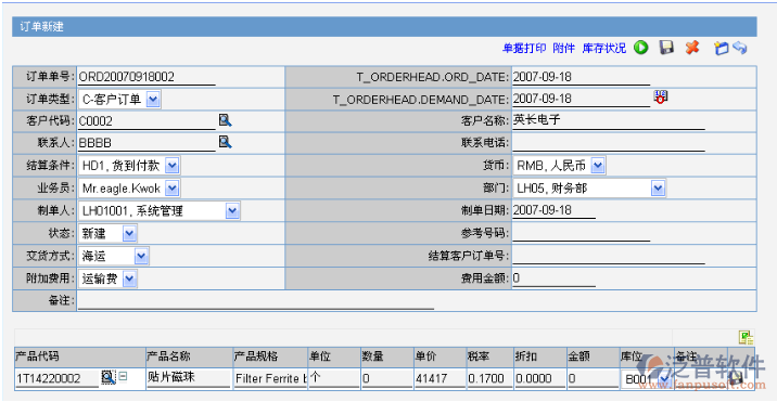 - 17ERP銷(xiāo)售訂單編制