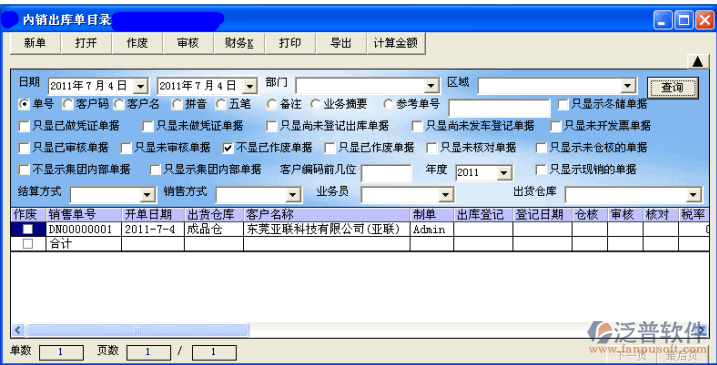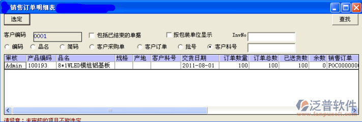 d、由倉(cāng)庫(kù)打單,銷售出貨單必須由內(nèi)銷訂單帶過(guò)來(lái),數(shù)量不能更改。
