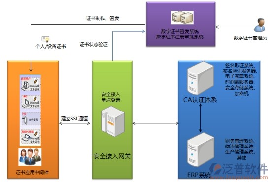 3) CA認證體系為ERP系統(tǒng)提供對敏感數(shù)據(jù)的加密和安全存儲,對關(guān)鍵審批環(huán)節(jié)的電子簽名和電子簽章的功能,在發(fā)生糾紛時,能從簽名取證系統(tǒng)快速獲取簽名數(shù)據(jù),提供有效的電子證據(jù)。