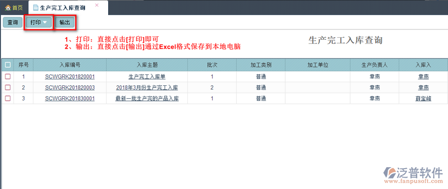生產(chǎn)完工入庫列表