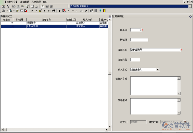 信息類別:記錄信息項所屬的類別,如人事、薪金、勞保等。