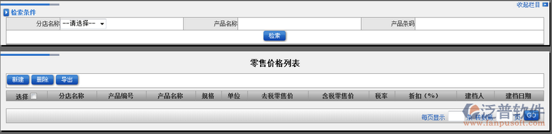 1、點(diǎn)擊【零售價(jià)格設(shè)置】進(jìn)入主界面,在此界面中可以查看到所有的檢索條件。如圖:
