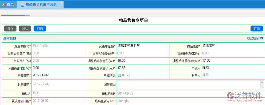 新建物品售價變更單