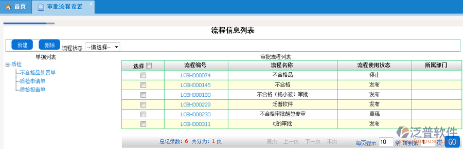 1.點(diǎn)擊辦公模式→質(zhì)檢管理→基本設(shè)置→審批流程設(shè)置,進(jìn)入“審批流程設(shè)置”窗口: