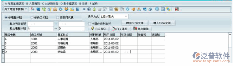 2、功能:員工打卡主要提供給企業(yè)管理員工在固定的機器進行上下班的考勤記錄,系統(tǒng)提供兩種打卡模式給企業(yè)選擇,分別是<員工代號固定機器打卡>和<員工卡號固定機器打卡>。