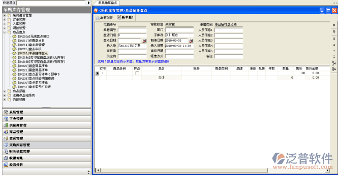 功能說明:用于在盤點(diǎn)審核后,如果某些商品盤點(diǎn)數(shù)量有誤,針對(duì)單品做單品抽樣盤點(diǎn)單將實(shí)盤數(shù)量記錄進(jìn)去,系統(tǒng)會(huì)重算盤點(diǎn)盈虧。