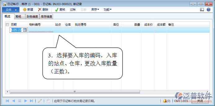 ?。?)單擊“區(qū)域頁”節(jié)點(diǎn): 庫存和倉庫管理 ->日記帳 ->物料交易記錄 ->其他出入庫。