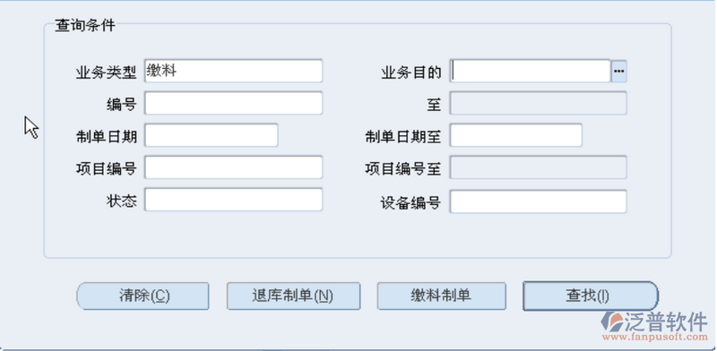 選擇“單據(jù)類型”為“繳料”,可依據(jù)繳料編號查找單據(jù),或直接點擊“查找”進入。