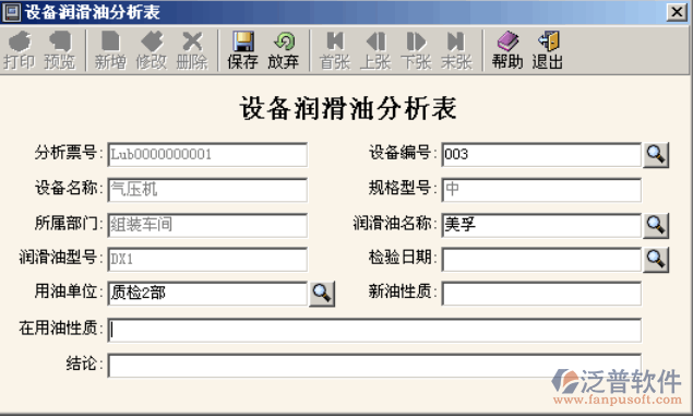 錄入設(shè)備潤滑記錄和設(shè)備潤滑油分析