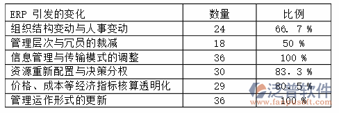 我們不妨從另一角度來(lái)看看ERP實(shí)施中出現(xiàn)的問(wèn)題,2005年,有關(guān)調(diào)查機(jī)構(gòu)對(duì)上述63家企業(yè)中的36家企業(yè)部分管理者進(jìn)行了訪談,從表3中我們不難看出,ERP工程的實(shí)施給企業(yè)帶來(lái)了多么大的“震蕩”。