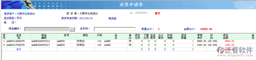 7、全部輸入完以后,在“商品編碼”里直接回車,則會顯示出該單據(jù)錄入的所有明細(xì)數(shù)據(jù)。