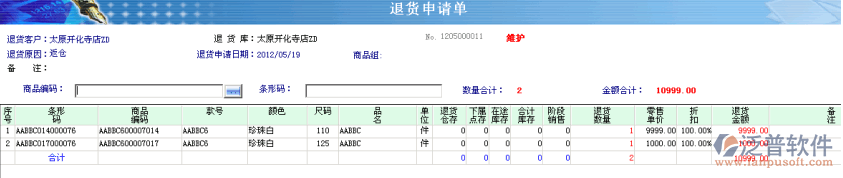 6、輸入完數(shù)量后,回車。然后返回至單據(jù)頭的“商品編碼”的框里繼續(xù)輸入其他需要要貨的商品。