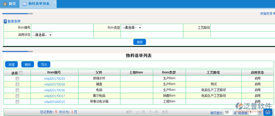 1.點(diǎn)擊辦公模式→生產(chǎn)管理→物料清單→物料清單列表,進(jìn)入“物料清單列表”窗口: