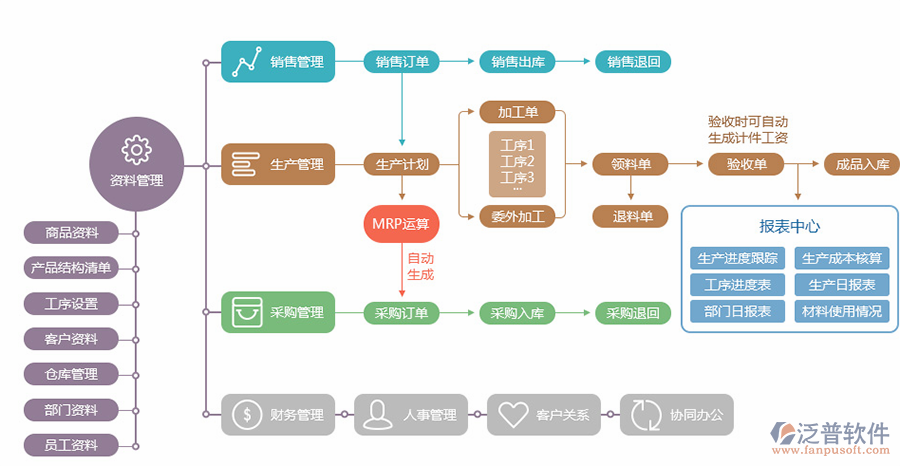 生產(chǎn)部們根據(jù)“銷售訂單”所涉及的產(chǎn)品,在系統(tǒng)中生成“生產(chǎn)型物料清單(BOM)”,生產(chǎn)部根據(jù)“生產(chǎn)型物料清單(BOM)”中所涉及輔料提交采購申請,由采購專員進行采購。生產(chǎn)過程中生產(chǎn)部會根據(jù)銷售合同進行生產(chǎn)排產(chǎn)下達生產(chǎn)訂單。生產(chǎn)車間根據(jù)所下達的生產(chǎn)任務(“生產(chǎn)訂單”)向倉庫進行生產(chǎn)領(lǐng)料,庫管員在系統(tǒng)中生成“生產(chǎn)發(fā)貨單”進行發(fā)貨。