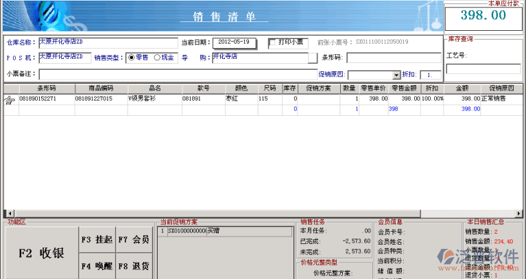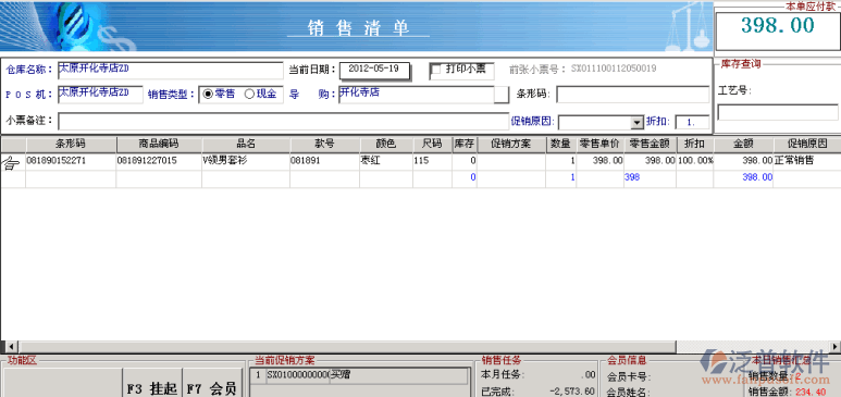 該單據(jù)則會(huì)返回到POS銷售的界面。