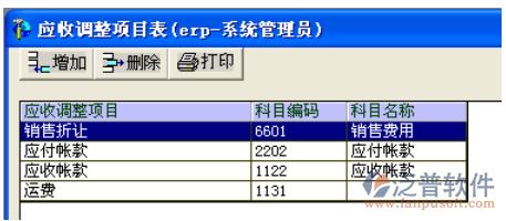 概述:設(shè)置應(yīng)收帳款的調(diào)整項目,在做應(yīng)收帳調(diào)整單時可以直接選擇調(diào)整的項目名稱,提高工作效率。