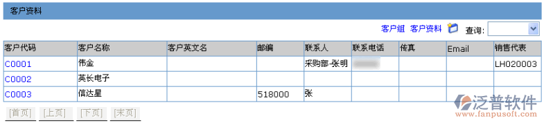 設(shè)定客戶資料,其中的名稱、聯(lián)系人、電話資料在訂單中選擇客戶時(shí),將被自動(dòng)帶入到訂單中。