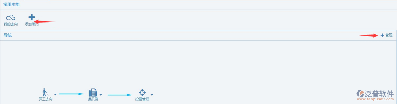 導(dǎo)航或者常用功能如需繼續(xù)設(shè)置,在行政模塊門(mén)戶當(dāng)中點(diǎn)擊+號(hào)繼續(xù)添加即可