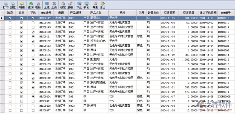 系統(tǒng)中的主生產(chǎn)計(jì)劃編制考慮到計(jì)劃訂單(日生產(chǎn)計(jì)劃)、銷售訂單、可用物料、可用能力。它與銷售、預(yù)測(cè)系統(tǒng)有著靈活的接口,數(shù)據(jù)可由銷售、預(yù)測(cè)子系統(tǒng)匯!達(dá)通ERP主生產(chǎn)計(jì)劃子系統(tǒng)為您的企業(yè)制定出一個(gè)切實(shí)可行的主生產(chǎn)計(jì)劃。