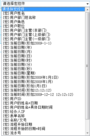 下拉列表宏控件在流程執(zhí)行過程中,用戶在下拉菜單中根據(jù)需要選擇相應的內(nèi)容,目前包括以下6個控件功能,如下圖示: