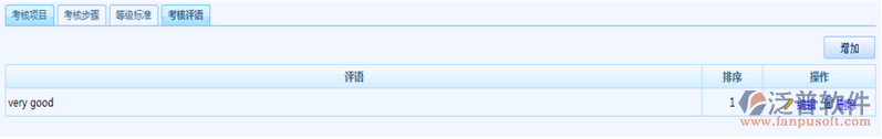 在考核評(píng)語一欄,點(diǎn)擊【增加】按鈕,添加所需的考核評(píng)語,點(diǎn)擊操作區(qū)內(nèi)的【編輯】,可修改原有的考核評(píng)語,點(diǎn)擊【刪除】,即可刪除指定考核評(píng)語