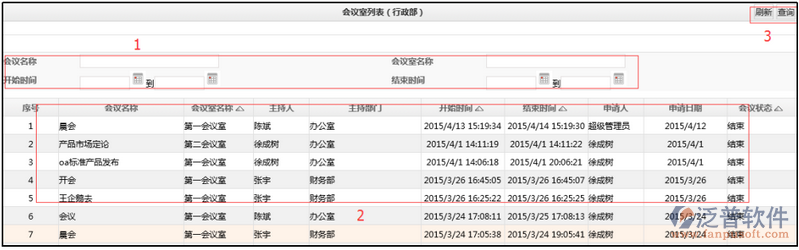 會(huì)議列表(所有)是申請(qǐng)的會(huì)議記錄、顯示工具。圖示如下:
