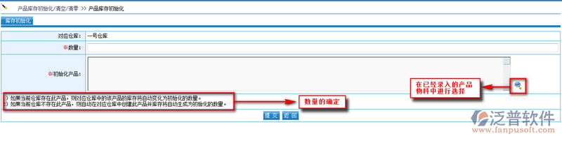 注意:如果當(dāng)前倉庫存在此產(chǎn)品,則對應(yīng)倉庫中的該產(chǎn)品的庫存將自動變化為初始化的數(shù)量