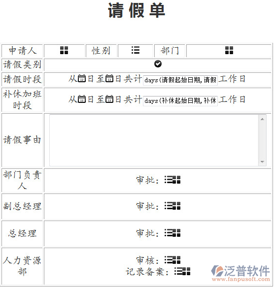 設計的請假單如下所示:
