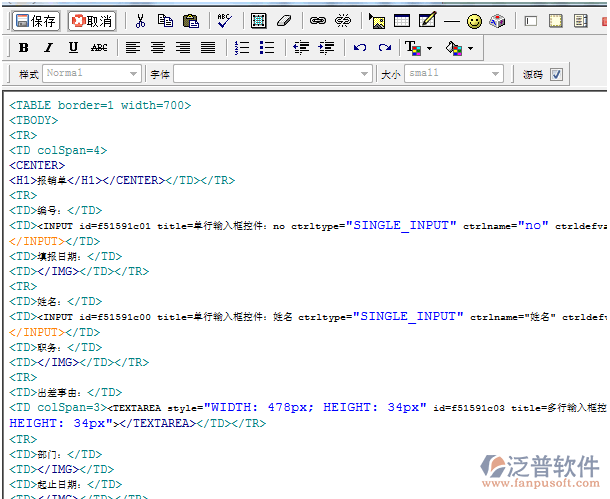 勾選□選框以后,表單編輯器處于源代碼編輯狀態(tài),顯示的也是表單的html源代碼,您可以直接在源代碼編輯器里直接編寫代碼,如下圖
