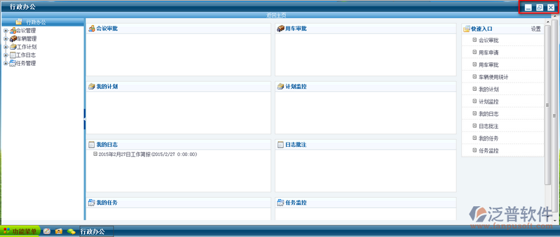 例如:進入【行政辦公】如下圖:(可以放大、縮小關(guān)閉),功能操作和常規(guī)界面是一樣的。