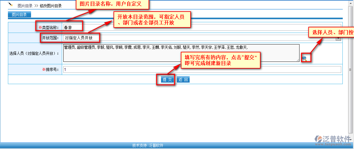 OA系統(tǒng)圖片管理相當(dāng)于員工、部門、公司的一個(gè)相冊(cè)管理。在圖片管理中我們需要先設(shè)置好圖片存放的目錄。詳細(xì)請(qǐng)查看《新增圖片目錄》