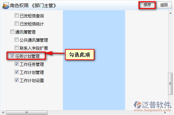 步驟二、在主管權限組中位主管添加【任務計劃管理】,點擊【保存】;