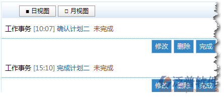 在日程管理頁面可以修改、刪除、完成、未完成自己安排的事務(wù),其他用戶安排給你的事務(wù)只能進行完成和未完成操作。