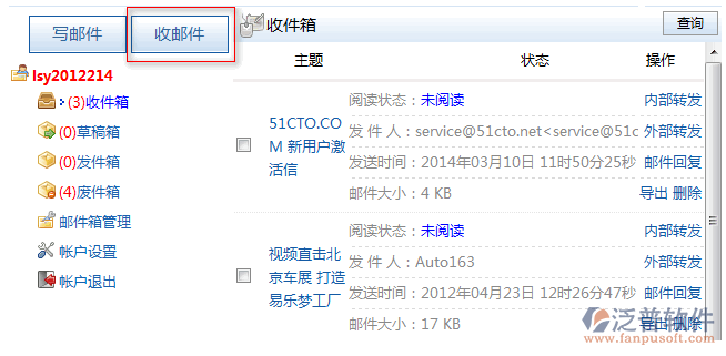 外部郵箱用來接收各大主流外部郵箱的郵件,用戶可以把自己的郵箱賬號添加到系統(tǒng),可以直接在系統(tǒng)里接收到外部郵箱的郵件。
