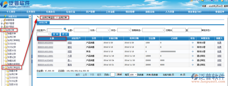 2、點(diǎn)擊我們的合同訂單主題即可了解詳細(xì)的合同訂單情況。如下圖所示: