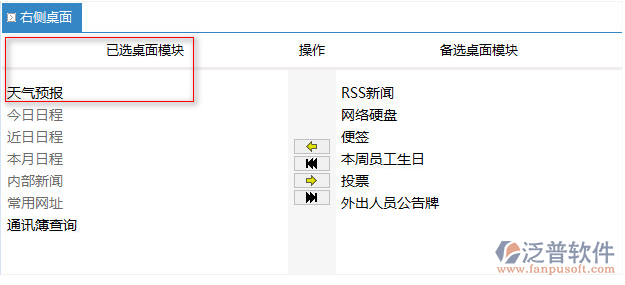 如果天氣預(yù)報(bào)模塊在備選桌面模塊中灰顯,不能移至已選桌面模塊,聯(lián)系OA管理員在系統(tǒng)設(shè)置中修改。