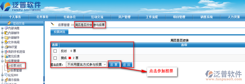 公司很多事情可選擇民主選擇,這樣就離不開我們的投票管理,在【投票瀏覽】中可了解到我們當前有那些投票并可參與投票。具體操作情況見下文: