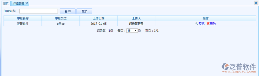 印章是企業(yè)、單位對(duì)公文、證件生效負(fù)責(zé)的憑證,是其對(duì)內(nèi)對(duì)外行使權(quán)力的標(biāo)志。由于印章的特殊作用,各單位的印章一般都由辦公室掌管和使用,系統(tǒng)為企業(yè)提供印章管理功能,企業(yè)可將相關(guān)印章通過(guò)office格式上傳到系統(tǒng)中進(jìn)行管理。